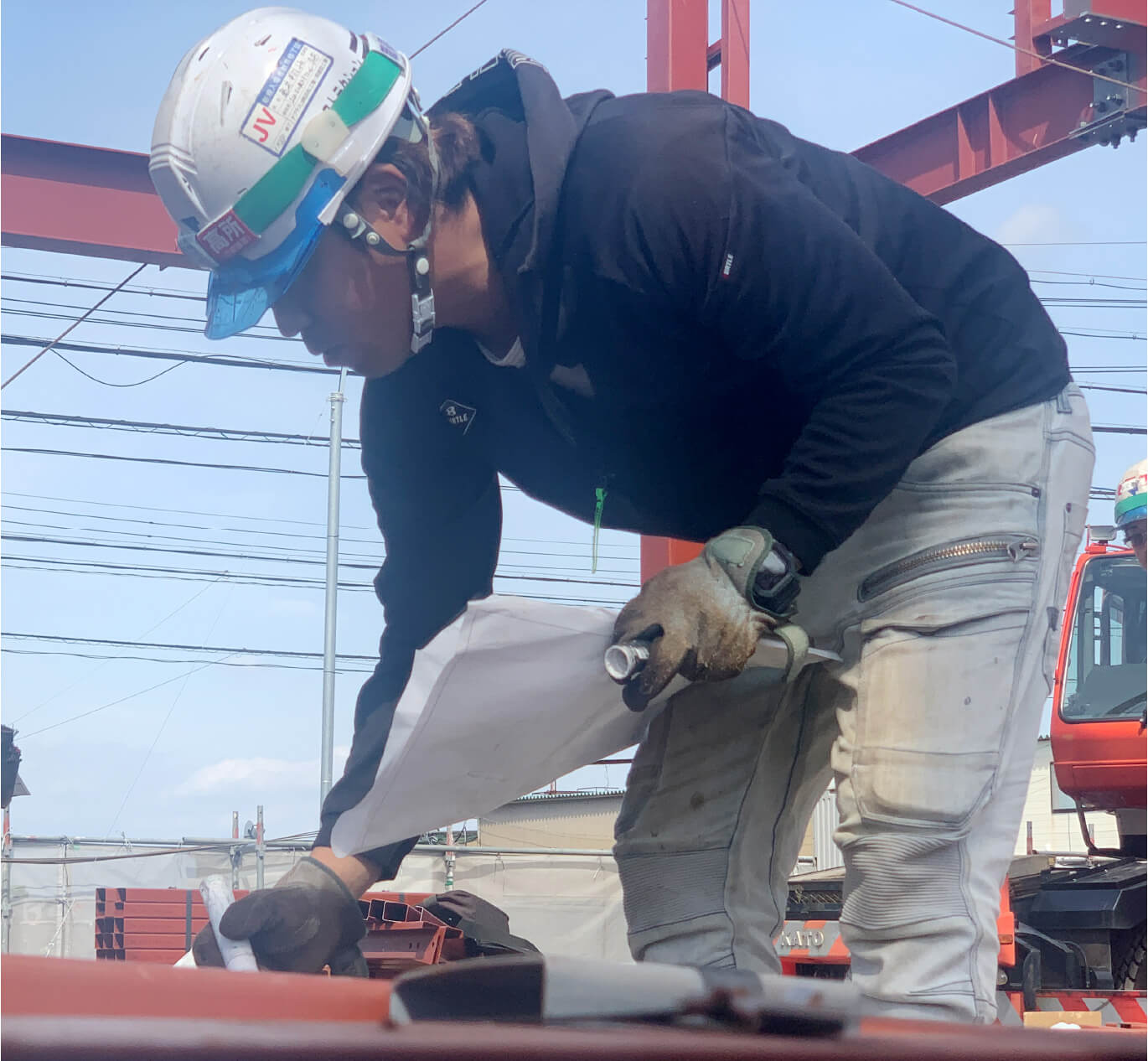 鉄骨工事は体力が必要になる為慣れるまでは大変かもしれませんが、その分出来上がった時の達成感も大きい仕事。従業員同士の仲が良く、現場が完成した時には飲み会などを開いて互いを労ったり、喜びをみんなで分かち合える点も大きな魅力です!